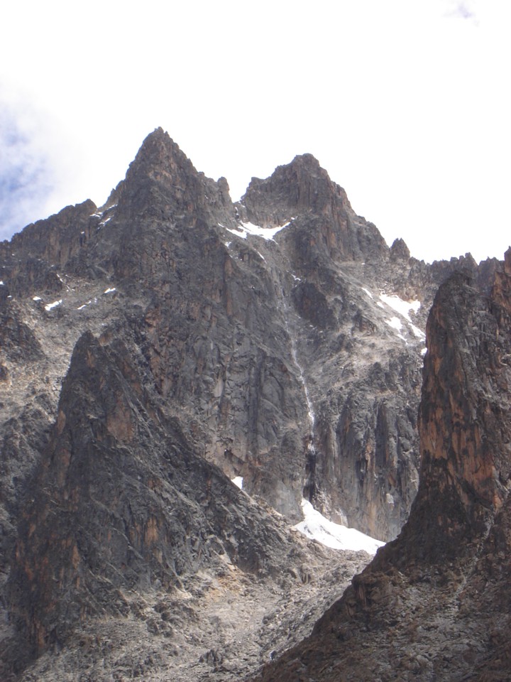 Diamong Ice Couloir and the twin summits of Mt. Kenya