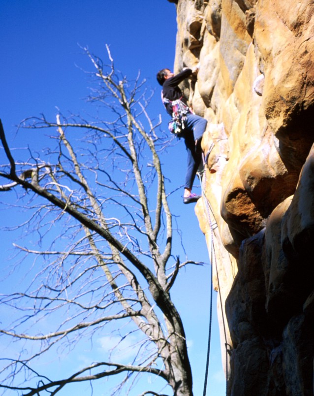 Jim at the crux of Chinese Algebra, one of the hardest routes we did at Arapiles