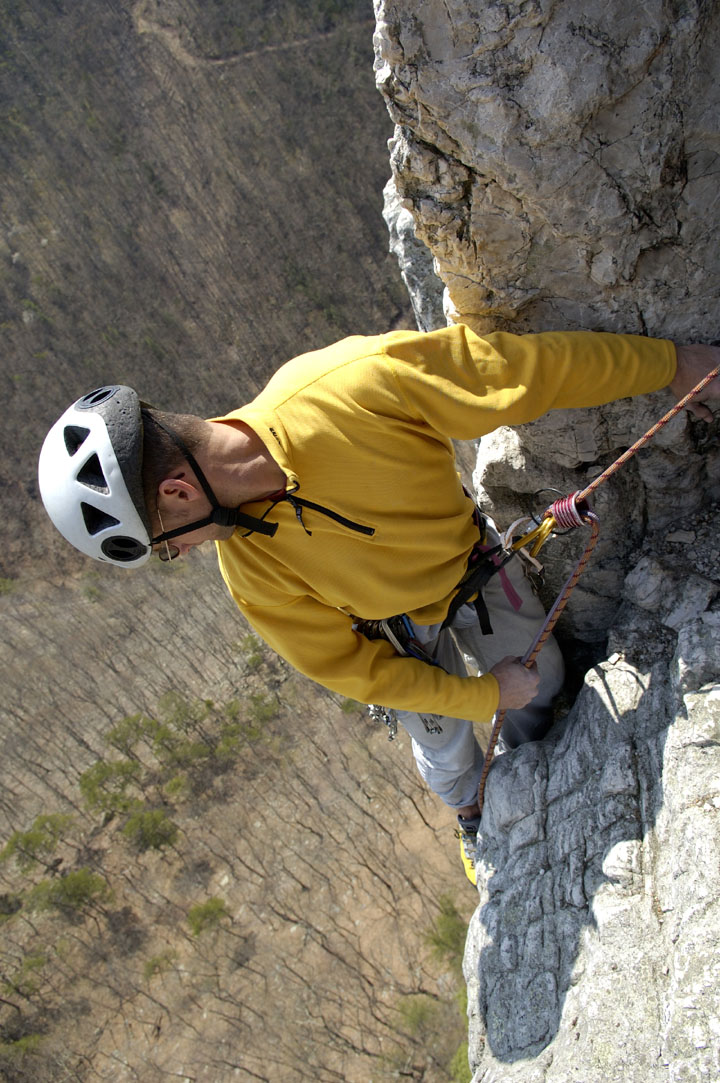 Rappelling down the east face of the South Peak from the "hole" at the top of Pleasant Overhangs