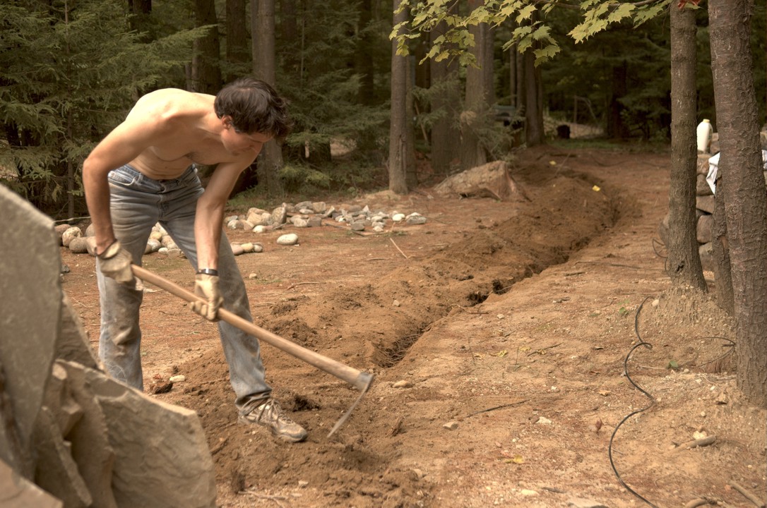Jim digs the trench for the phone cable on a hot, sweaty day
