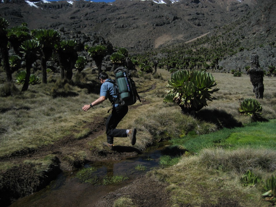 Jumping a bog in Temple Fields in a forest of giant groundsel