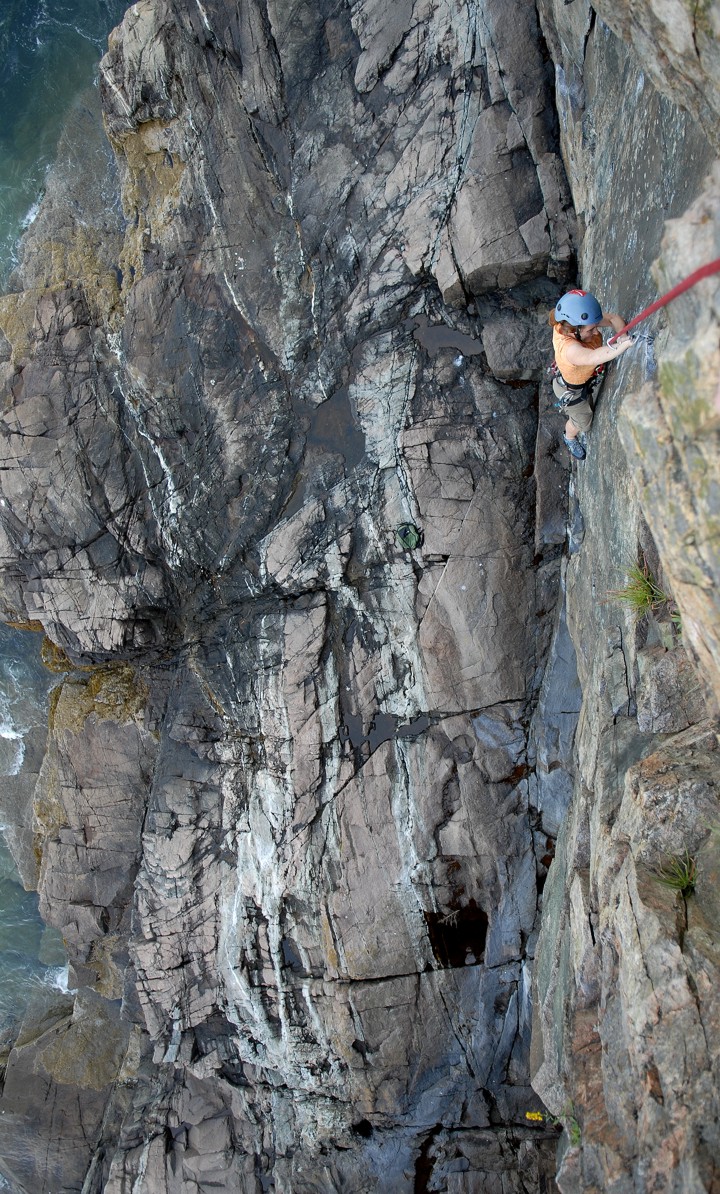 Following a beautiful crack above the sea, perhaps one of the best routes at Otter Cliffs