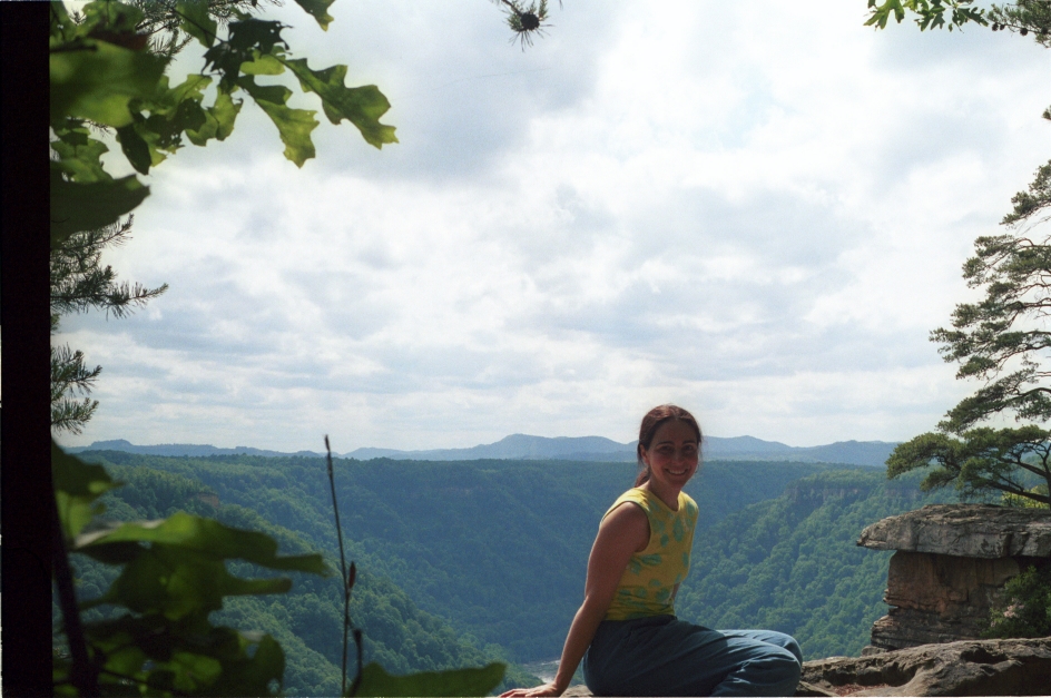 Lucie posed in front of the New River