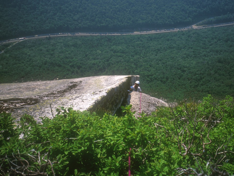 Bones follows the last pitch of Moby Grape; this finish climbs corners left of the standard finish