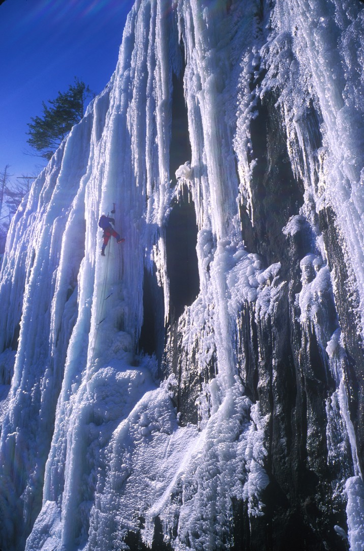 Tommy leading an ambitious line on the Waterfall with Katherine Snead